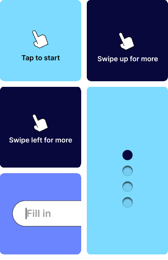 Discovery (multiple layers) –Video/images/mini-games/forms + swipe-hint